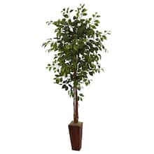 Amazon Com Nearly Natural 6 Ft Elegant Ficus Artificial Silk Trees Green Home Kitchen