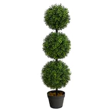 Two 56 Inch Artificial Boxwood Double Ball Topiary Trees UV Rated.